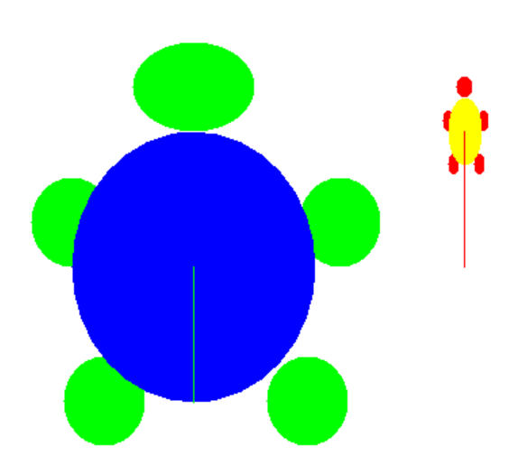 The CustomTurtle class in the ActiveCode below inherits many of its attributes and methods from the Turtle class (you will learn more about inheritance in Unit 9). However, it has some new constructors with more parameters to customize a turtle with its body color, shell color, width, and height. CustomTurtle has 3 constructors:
