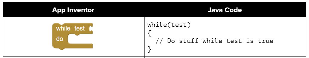 Figure 1: Comparing App Inventor and Java for while loops¶