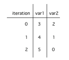 Figure 1: A table showing the values of all of the variables each time through the loop. The 0 means before the first loop.¶