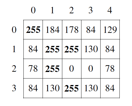 A call to countWhitePixels method would return 5 because there are 5 entries (shown in boldface)