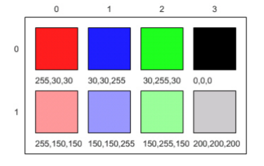 Figure 1: RGB values and the resulting colors displayed in rows and columns¶