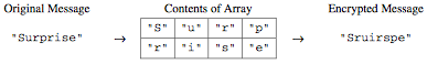 For example, the word “Surprise” can be encrypted using a 2-row, 4-column array as follows.