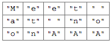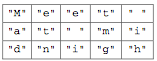 If letterBlock has 3 rows and 5 columns and str is the string “Meet at midnight”, the resulting contents of letterBlock would be as shown in the following table.