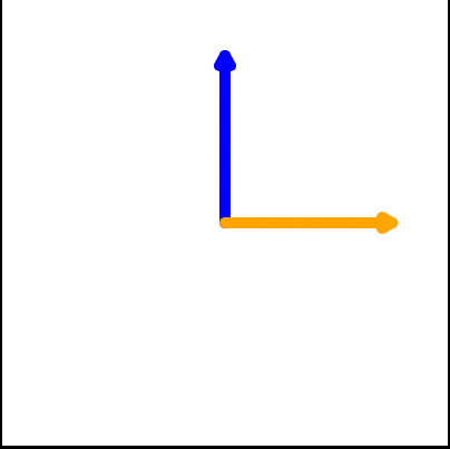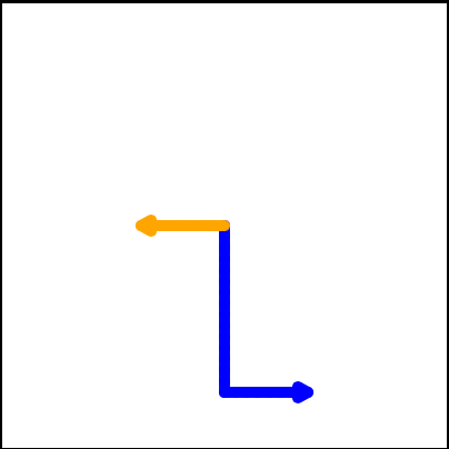The following program has one turtle, “jamal”, draw a line to the north in blue and then another, “tina”, draw a line to the east in orange as shown to the left,